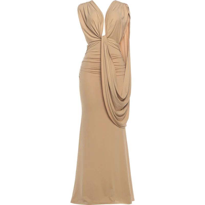 Vestidos largos con decoración de cinta Nibber para mujer, fruncidos, elegantes, con escote en V profundo, sin mangas, sin espalda, de calle, sólidos, básicos, clásicos.
